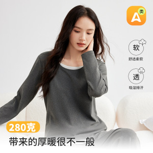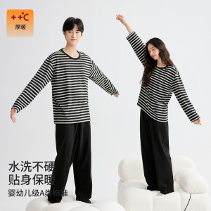 280克秋冬季黑条纹长袖睡衣情侣家居服女居家睡衣高级感套装