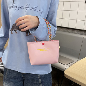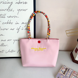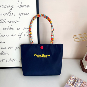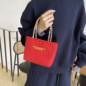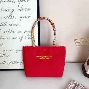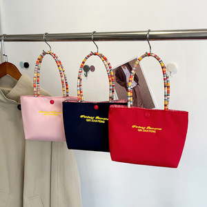 2025新款复古刺绣字母手提包便携时尚帆布手机包高级感彩绳托特包