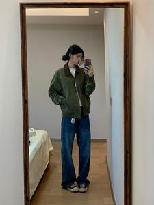 复古军绿色拼接棒球服外套女2025年春秋新款宽松设计感撞色夹克潮