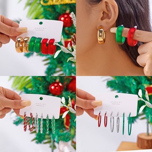 跨境欧美圣诞耳饰 圣诞节红绿白扭曲耳圈耳环3对套装百搭节日礼物