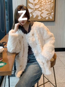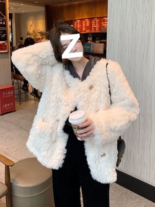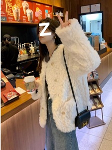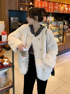 小香风刷花兔毛外套女2025冬季新款小个子宽松加棉毛毛上衣棉服女