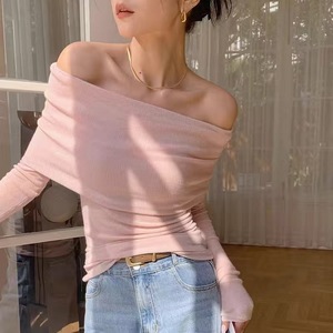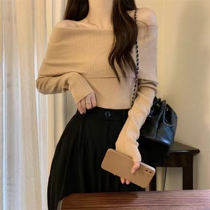 2023春秋款一字肩毛衣针织打底衫女小香风内搭早春chic高级感上衣