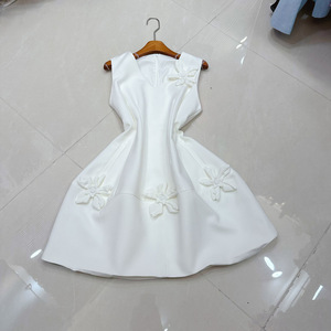 南油欧美澳洲聚会显瘦领手工花朵无袖连衣裙优雅小礼裙