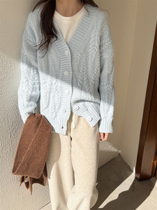 麻花针织开衫新款韩系秋装外套麦穗毛衣女外穿宽松慵懒风女装上衣