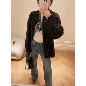 软宝石 色定染高奢小卷毛小湖羊皮毛一体女皮草外套秋新