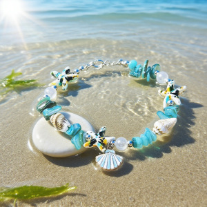 欧美跨境碎石海星贝壳手链波西米亚夏日沙滩度假风海边饰品批发