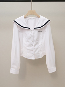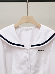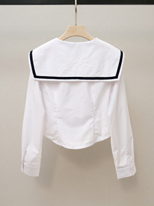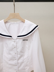 深圳南油高端女装秋季新款法式甜美设计感珍珠海军领长袖衬衫上衣