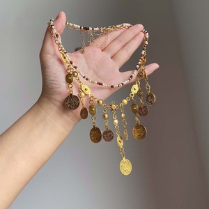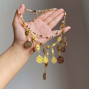 重工气质波西米亚风金属钱币流苏项链小众设计感异域风情百搭项链