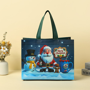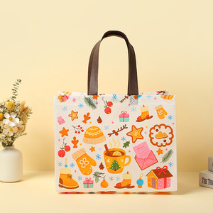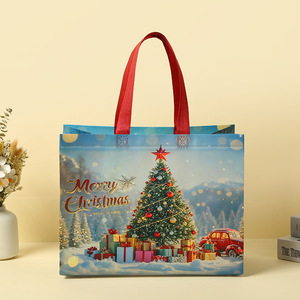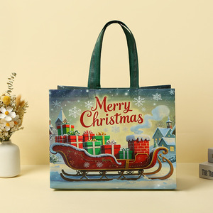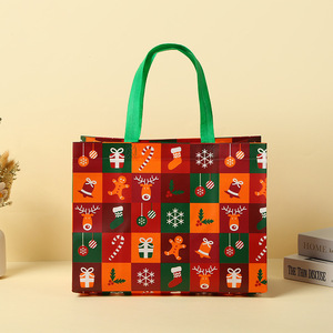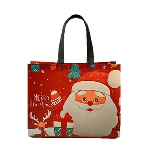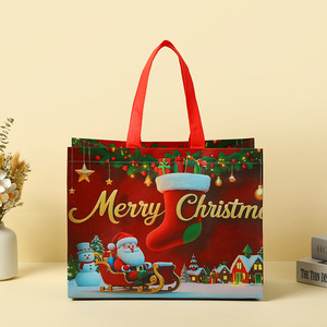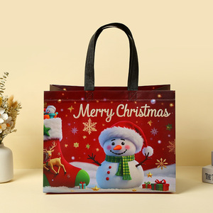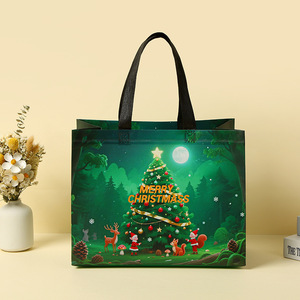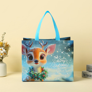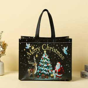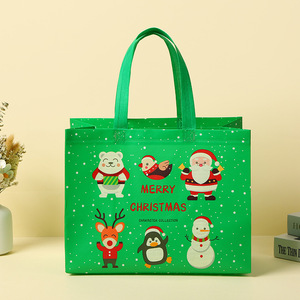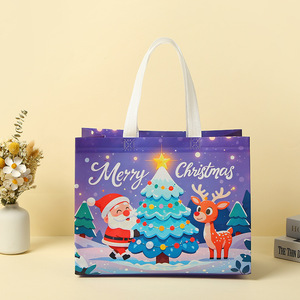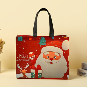 现货圣诞节无纺布礼品袋子批发卡通图案覆膜通用手提礼品袋可定制