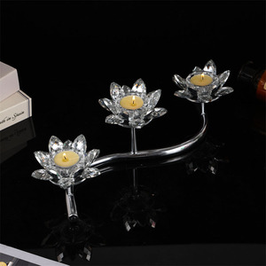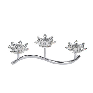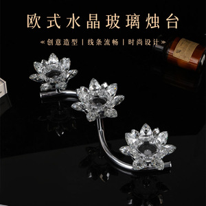 跨境婚礼派对烛台餐桌摆件烛光晚餐道具高级摆件三头玻璃莲花烛台