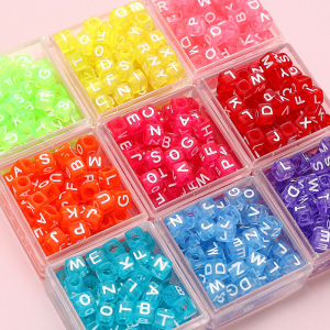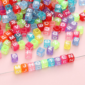 透明糖果色方形亚克力英文字母散珠 diy手工配件制作串珠手链珠子