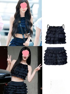 欧美金姐同款蝴蝶结荷叶边吊带背心蓬蓬蛋糕裙