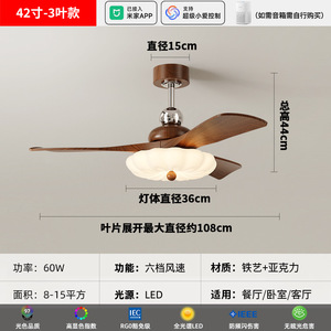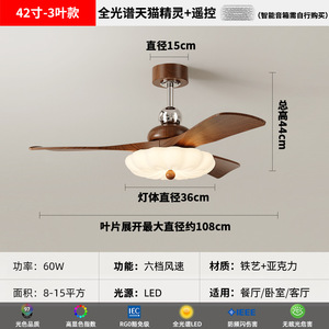 中古风客厅风扇灯法式复古奶油风花形静音护眼电扇一体吊扇灯具
