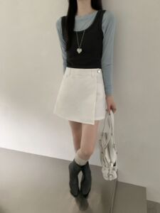 复古深蓝色裙裤女开叉设计感高腰休闲复古秋季牛仔短裙a字半身裙