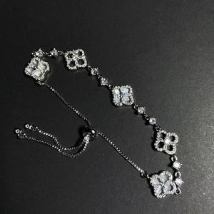 锆石菱形花朵镂空可调节手链小众轻奢高级感手环绝美氛围感手饰女