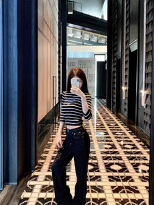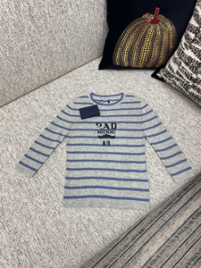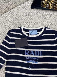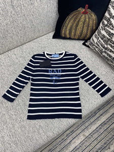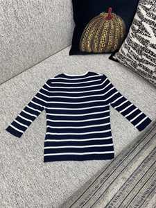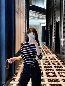 南油普家P家25早秋新款 圆领撞色条纹字母半袖针织衫打底上衣女装