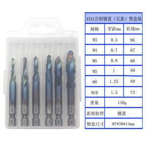 镀钛六角柄复合丝锥电钻打孔攻丝工具多功能6pcs套装机用螺旋丝锥