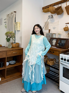 飘带设计感甜美蕾丝罩衫长袖T恤阔腿裙裤女2025秋季新款时尚套装