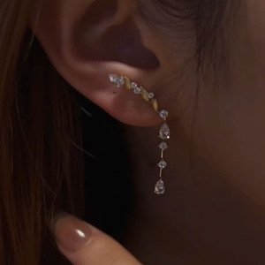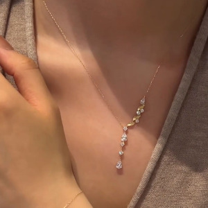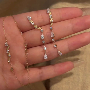 小红书爆款复古拉丝麦穗细闪y字项链耳环锁骨链简约百搭一件代发