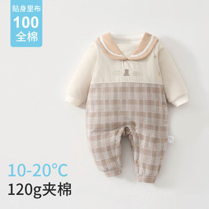 背带小花婴儿衣服新生连体衣120g棉宝宝爬服婴幼儿和尚服哈衣服