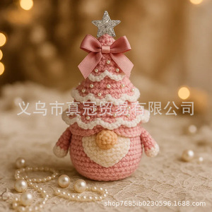 跨境新品钩织Crochet Christmas Tree Gnome圣诞树侏儒家居装饰