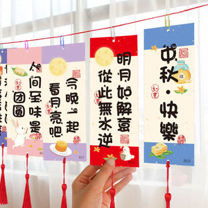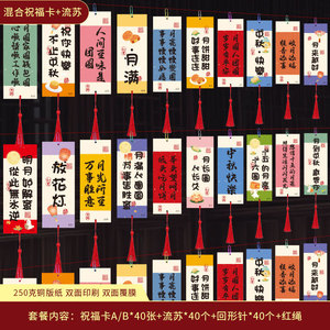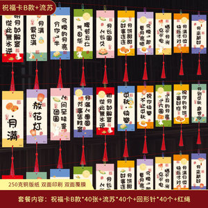 中秋双面印刷贺卡片灯谜祈愿望纸送礼礼品贺卡装饰目标心愿墙贴纸