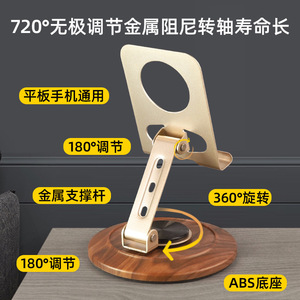 跨境木纹折叠旋转支架金属桌面手机支架懒人直播平板可升降调节便