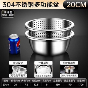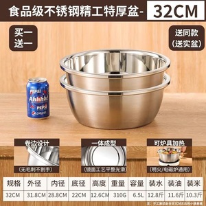 特厚304不锈钢盆食品级家用打蛋和面盆厨房烘焙洗菜盆汤盆铁盆子