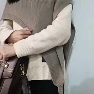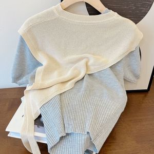 网红新款披肩斜边三角百搭女叠搭配设计洋气针织马甲飘带气质披肩