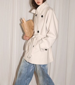 素舶 JI典斜纹立体廓形翻领短风衣外套女英伦风秋季气质大衣外套