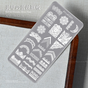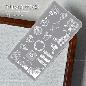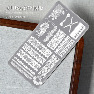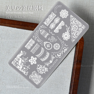 美甲爆款印花钢板带膜片 钢板转印蕾丝边甜美系模板镂空线条几何