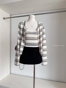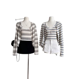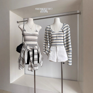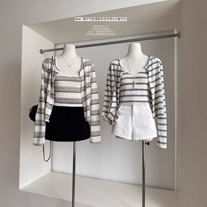 2025新款条纹针织内搭吊带背心秋季气质防晒薄款长袖开衫上衣套装