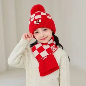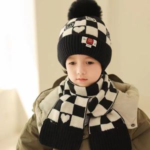 秋冬儿童帽子小熊毛线帽女童针织加棉保暖宝宝帽子围巾两件套
