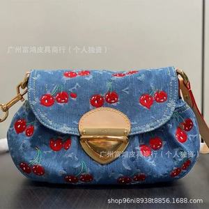 外贸跨境直供老花新款水洗牛仔单肩女包樱桃包腋下包小猪包元宝包
