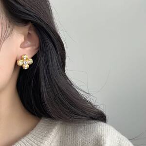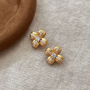 璀璨花瓣四叶草耳钉时尚轻奢高级感耳饰精致气质时尚优雅耳环批发