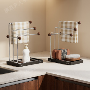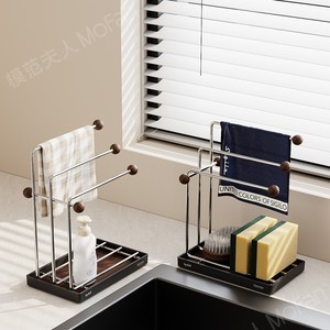 厨房抹布沥水架多功能不锈钢置物架家用台面洗碗布海绵收纳挂架子