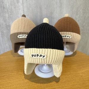 儿童帽子秋冬季韩版字母护耳针织帽宝宝保暖奶嘴男童女童套头帽潮