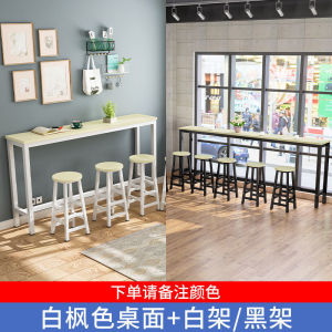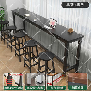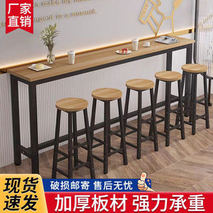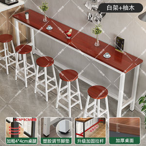 吧台桌子奶茶店高脚桌椅组合商用窄桌子靠墙长条桌简约长方形桌椅