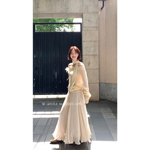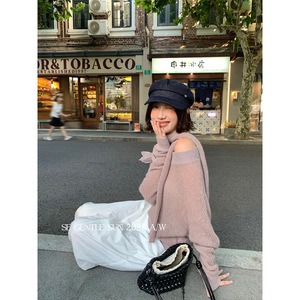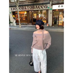 SE GENTLE SUN-氛围感立体花一字肩毛衣(配飘带)(含15羊毛)25355