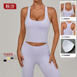 秋沙裸感美背瑜伽背心夏季跑步速干上衣外穿健身运动背心女3352