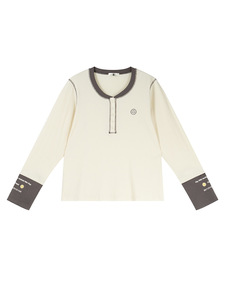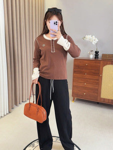 子元2025秋季新款大码女装撞色宽松T恤V领拼接长袖打底衫W-225