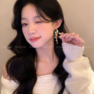 千金风金色菱形流苏耳钉女款轻奢高级感气质夸张耳圈绝美耳饰耳环