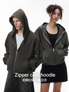 捷展男装|龙鳞拉链外套卫衣25秋季新品欧美boxy短款针织连帽上衣