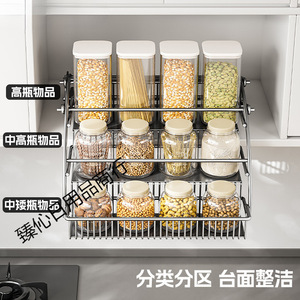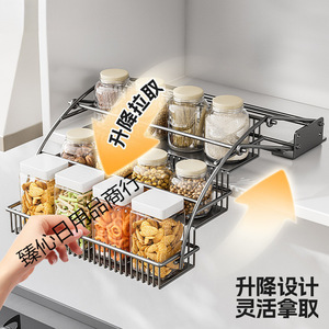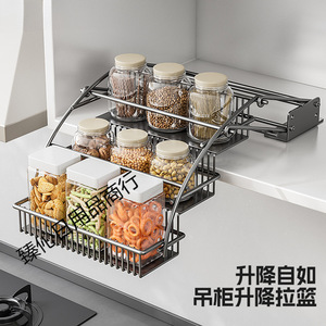 高端耐用厨房橱柜伸缩顶柜调味拉篮吊柜升降拉篮置物架收纳上下拉