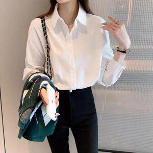 白衬衫女纯棉新款春秋设计感小众洋气女装上衣百搭休闲白色衬衣春