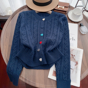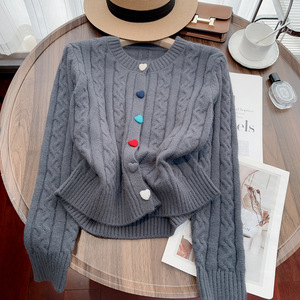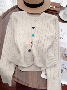 专柜撤回大牌剪标女装高级感彩色扣麻花毛衣女秋冬季软糯针织开衫