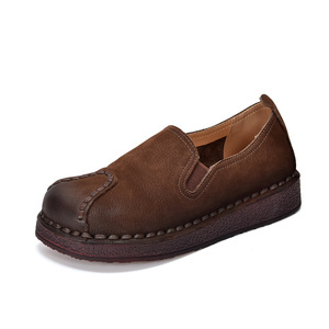2025头层牛皮新款民族风复古单鞋软底舒适百搭时尚女鞋一脚蹬