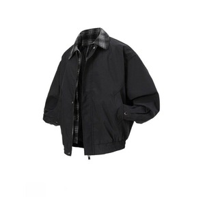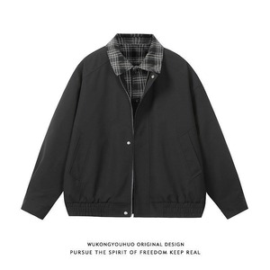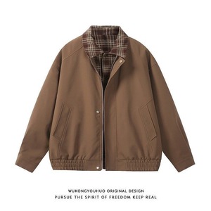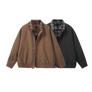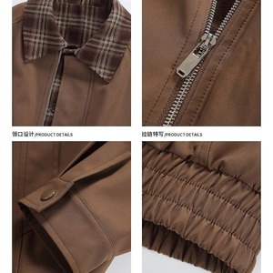 美式复古棕色外套男款春秋季美拉德穿搭假两件飞行夹克翻领棒球服