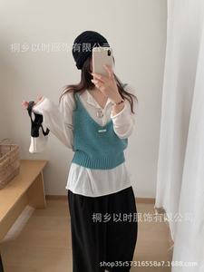 以时 秋装新品叠穿针织吊带衫 韩标V领前后两穿针织小吊带背心女