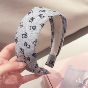 韩版新款ins百搭小熊印花布艺发箍高颅顶发箍头箍头饰发饰发窟女